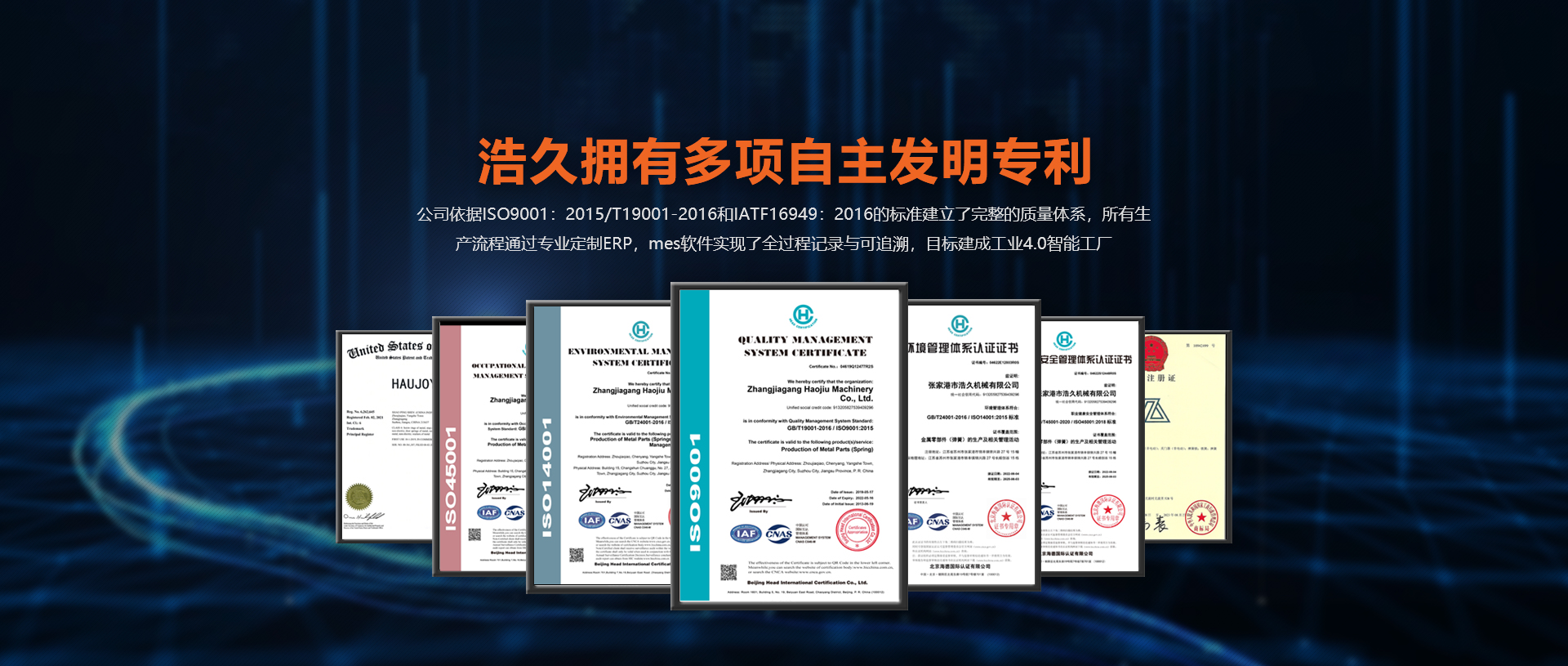 擁有GB/T24001-2016 / ISO14001:2015 標(biāo)準(zhǔn)的環(huán)境認(rèn)證證書(shū),GB/T45001-2020 / ISO45001:2018 標(biāo)準(zhǔn)的職業(yè)健康安全管理體系認(rèn)證證書(shū)等多項(xiàng)實(shí)力認(rèn)證證書(shū)